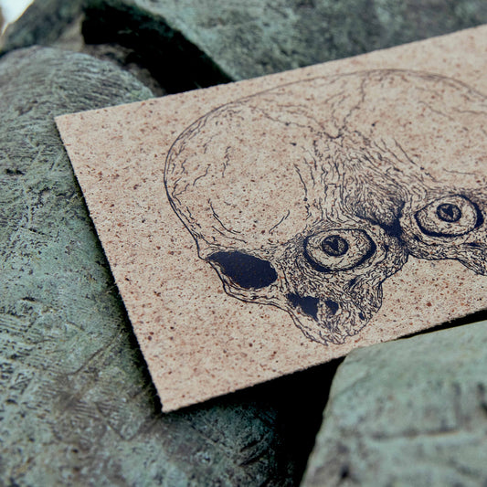 Postkarte "Janusschädel" in Korkoptik